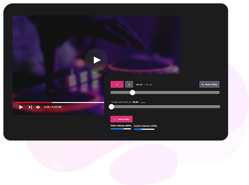 With features such as volume control for both video and music audio, start time, looping audio and more.